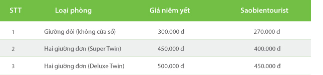 - Trẻ em dưới 5 tuổi: miễn phí ngủ chung với bố mẹ, miễn phí ăn sáng.