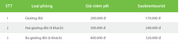 - Trẻ em dưới 5 tuổi: miễn phí ngủ chung với bố mẹ, miễn phí ăn sáng.